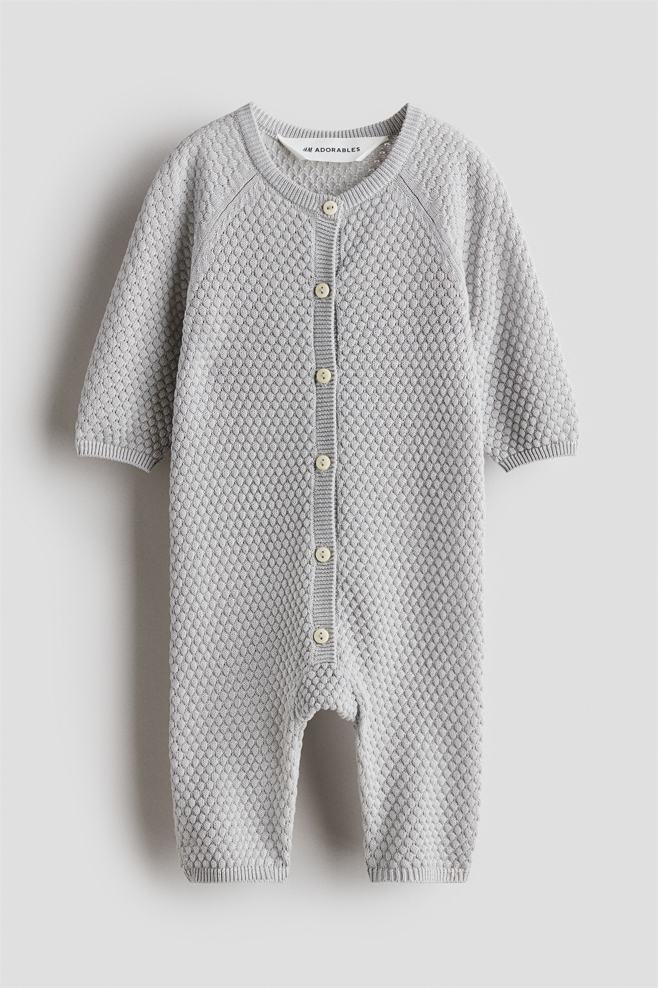H&M Adorables. Ромпер из мягкого фактурного трикотажа из смеси хлопка и лиоцелла. Круглый вырез с ребристой отделкой, пуговицы спереди, длинные рукава реглан и ноги. Окантовка в рубчик на пуговицах, манжеты и подолы. Коллекция H&M Adorables - это подборка удобных и качественных вещей, не теряющих актуальности.