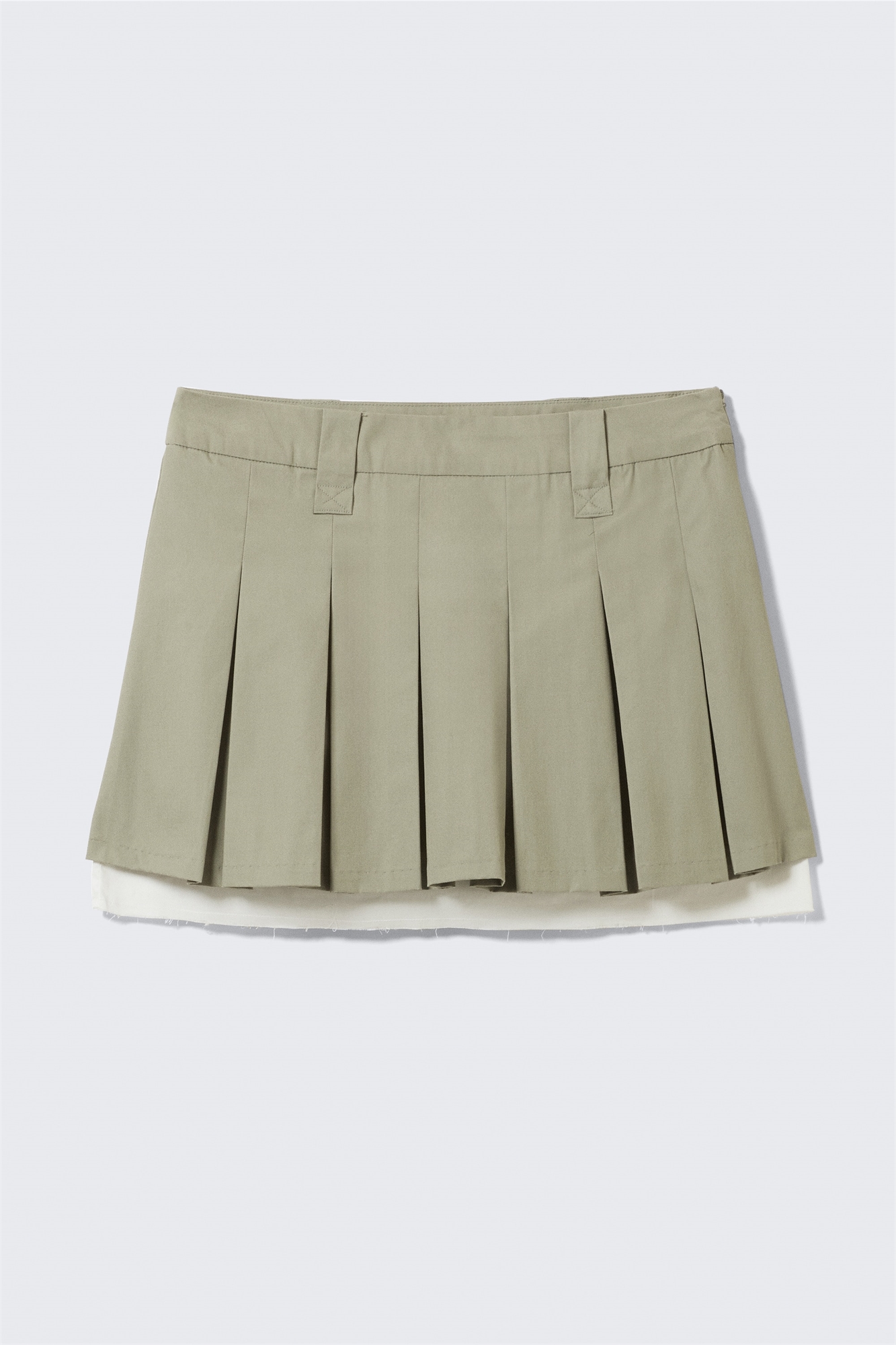 Плиссированная юбка-мини со средней посадкой на талии для придания силуэту стройности сшита из хлопковой саржи. С широкими складками, петлями для ремня и невидимой боковой застежкой-молнией. Полностью на подкладке, с хлопковым подкладом и обтрепанным подолом. Средняя посадка. Длина мини. Детали в виде складок. Петли для ремня. Невидимая боковая молния. Полностью на подкладке с обтрепанным подолом. Изготовлено из хлопковой саржи.