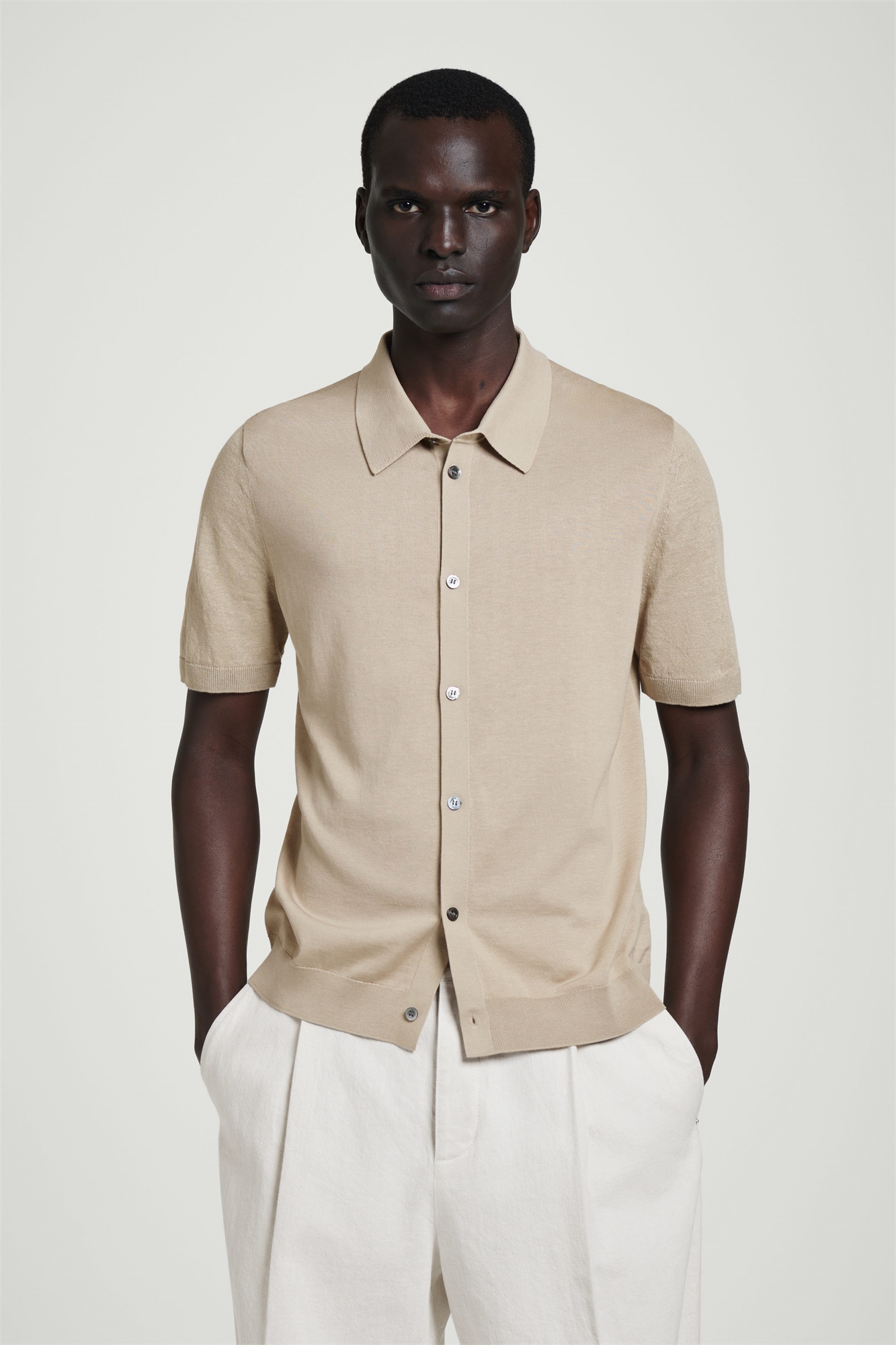 Эта трикотажная рубашка, ставшая классикой, изготовлена из льна и хлопка с добавлением шелка тутового дерева. Она выполнена в приглушенном песочном оттенке и украшена перламутровыми пуговицами, воротником из миланской вязки и ребристой отделкой. Regular fitЗастежка на пуговицы Состав: 44% лен, 36% хлопок, 20% шелк малбери. Без учета отделки / Машинная стирка Длина по спинке для размера M составляет 66 см / Модель носит размер M