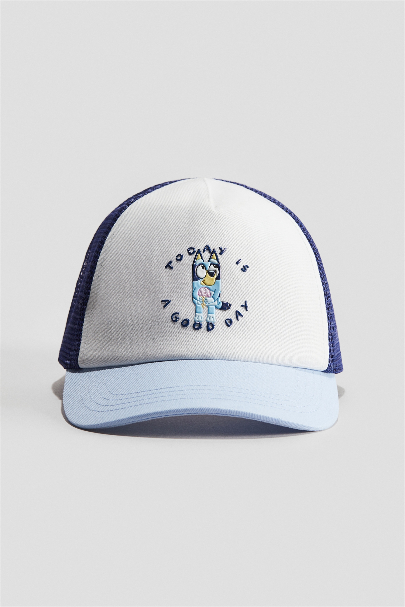 Кепка Trucker из тканого материала и сетки с мотивом спереди. Регулируемая пластиковая застежка сзади.