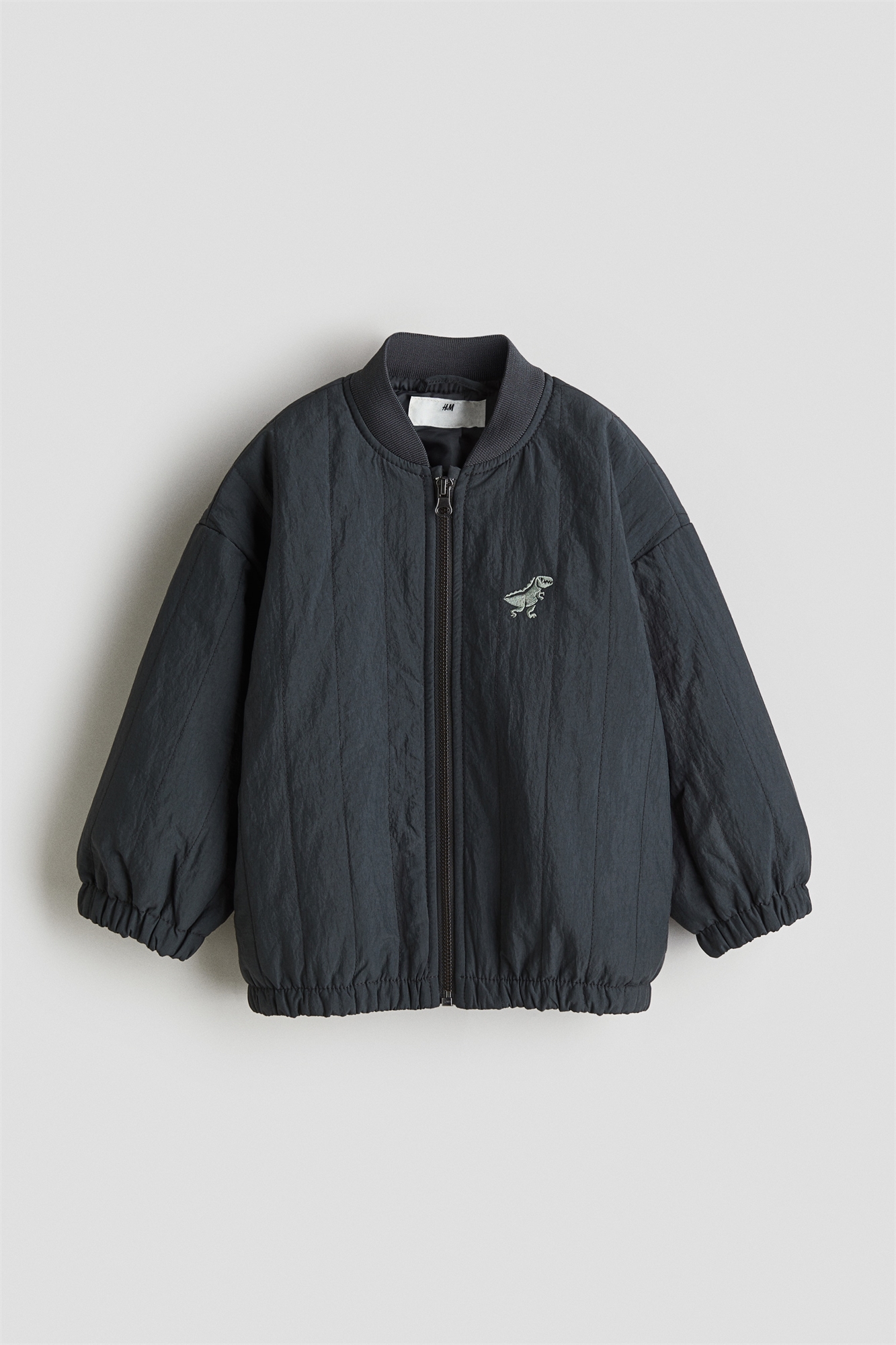 Куртка-бомбер больших размеров из мягкого стеганого нейлона с вышитой деталью спереди. Низкий ребристый воротник, застежка-молния спереди и эластичные манжеты и подол. На подкладке.