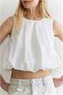 Топ без рукавов из хрустящего хлопкового поплина с объемным подолом-баллоном. Круглый вырез, застежка-ключница сзади и эластичный подол для создания структурированного, но воздушного образа. Без рукавов. Воздушный подол. Круглый вырез. Застежка на пуговицу сзади. Изготовлен из хрустящего хлопкового поплина.