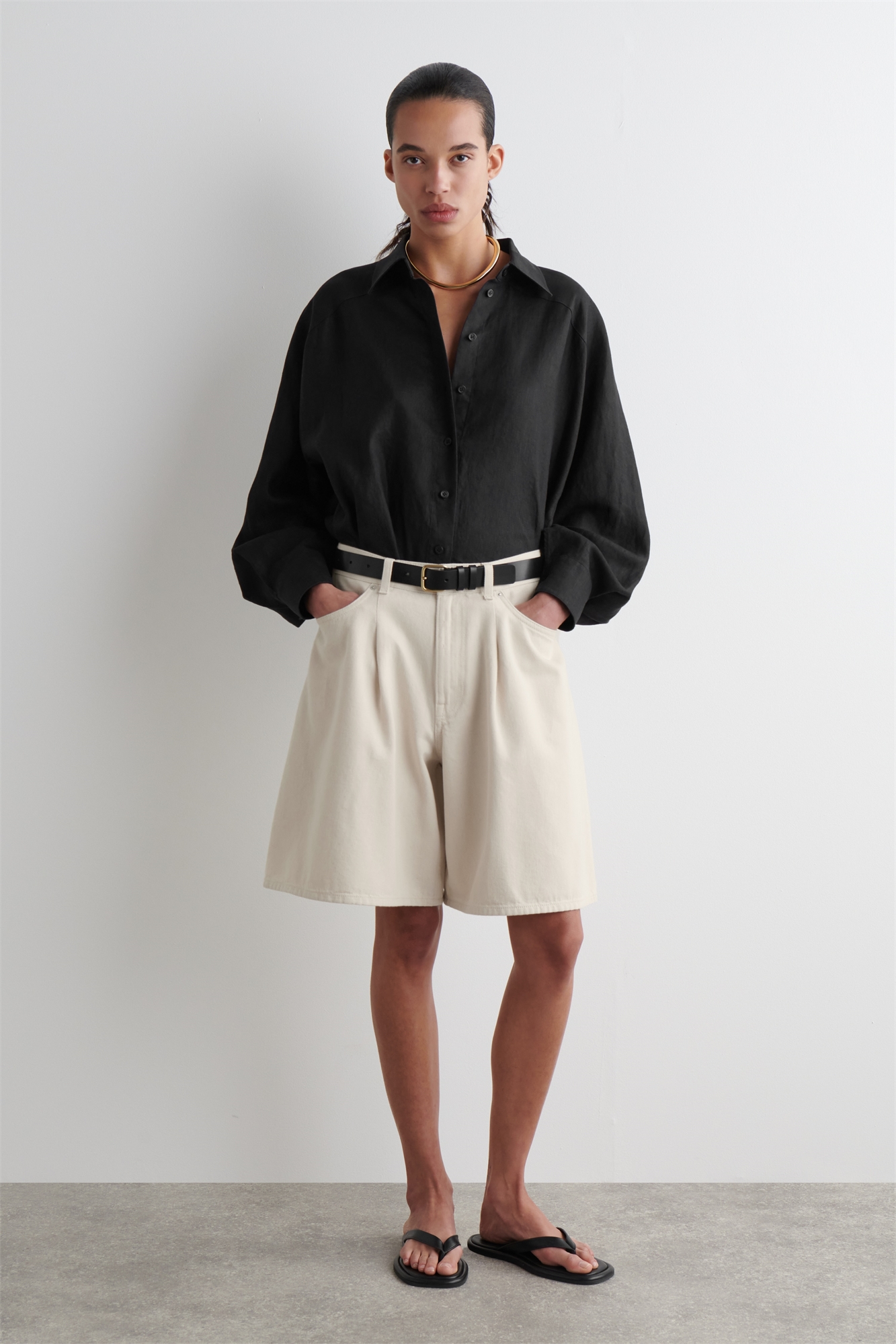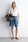 Джинсовые шорты - основа летнего гардероба. Эта современная пара, выполненная из органического и переработанного хлопка, имеет плиссированную отделку и широкие штанины, доходящие до колена. Наденьте их с белой рубашкой для создания минималистичного образа. Свободный кройЗастежка на пуговицах и молнииОрганический хлопок выращен из негенетически модифицированных семян без использования химических удобрений и пестицидов Состав: 80% органический хлопок, 20% переработанный хлопок. Без учета отделки / Машинная стирка Внутренняя длина штанины размера EU 36 составляет 22,8 см / Модель носит размер EU 36