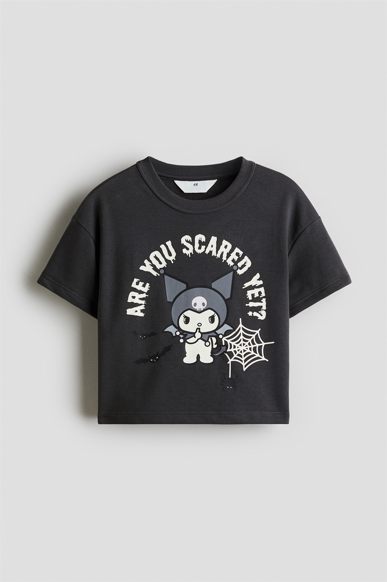 Футболка свободного покроя из принтованной легкой ткани. Круглый вырез с ребристой отделкой, спущенные плечи и короткие рукава.