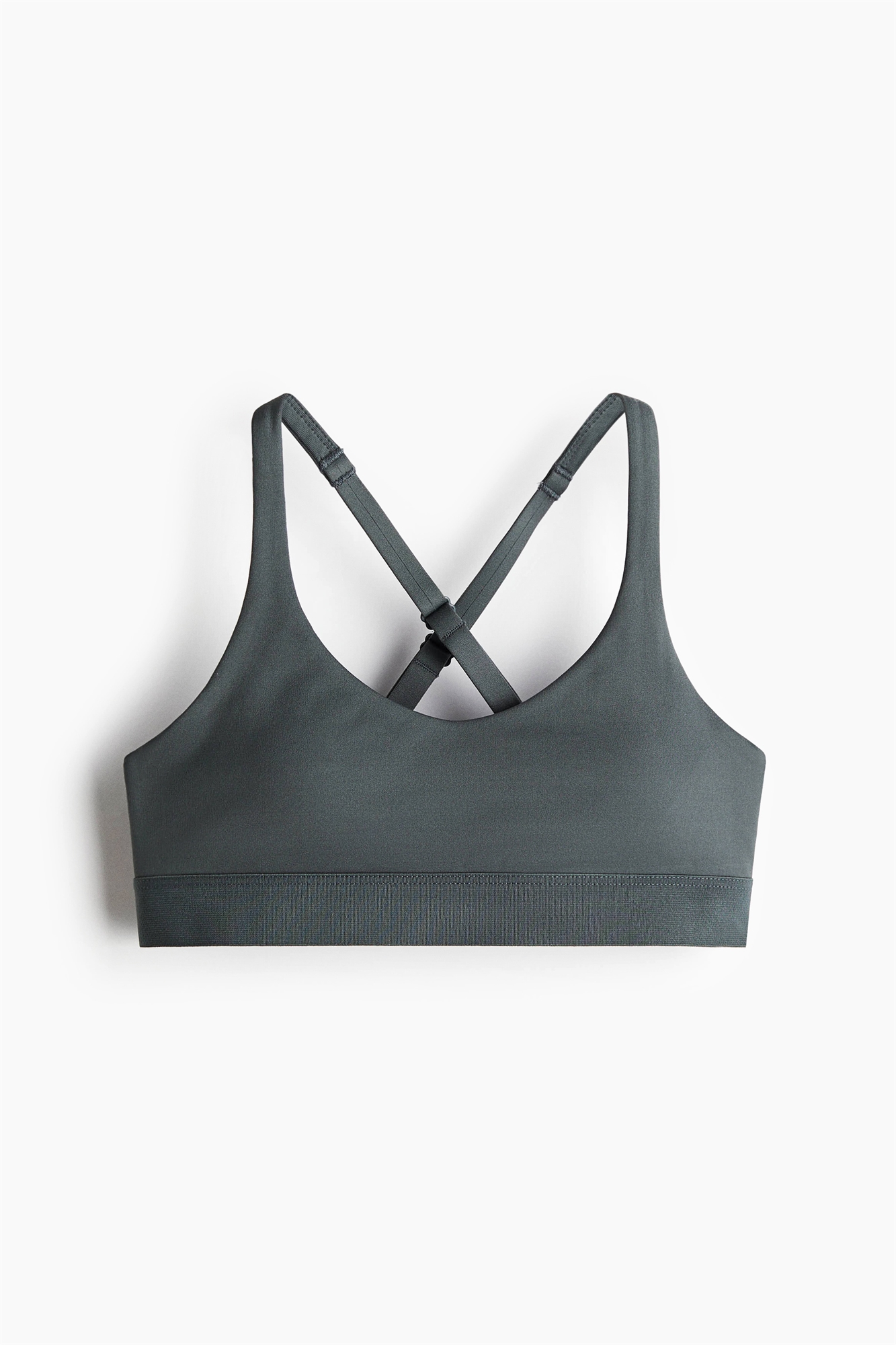 Спортивный топ из функциональной ткани DryMove™, которая помогает отводить влагу от кожи. Круглый вырез спереди, узкие бретели, которые можно носить скрещенными сзади или прямыми, и эластичная резинка по подолу. Съемные вставки. Без застежек.