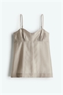 Топ в полоску из смеси лиоцелла. Вырез в форме сердца, узкие регулируемые бретели и скрытая застежка-молния и застежка-крючок сзади. Сборки под бюстом и однотонная тесьма спереди придают дополнительный стиль.
