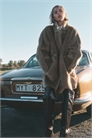 Свободное пальто длиной до колена из пушистой ткани с воротником и отделкой из мелованной ткани. Пуговицы спереди, длинные рукава реглан и втачные боковые карманы.