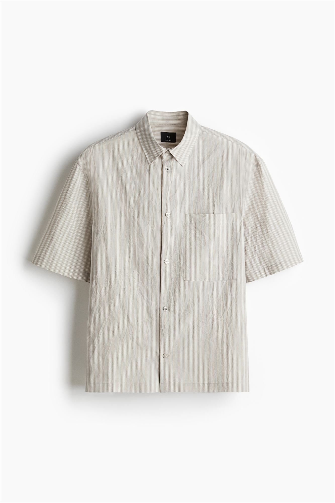 Рубашка с короткими рукавами из хлопкового полотна с отложным воротником, французским передом, передом, передом и открытым нагрудным карманом. Подол прямого кроя с разрезом с каждой стороны. Регулярный крой для комфортной носки и классического силуэта.
