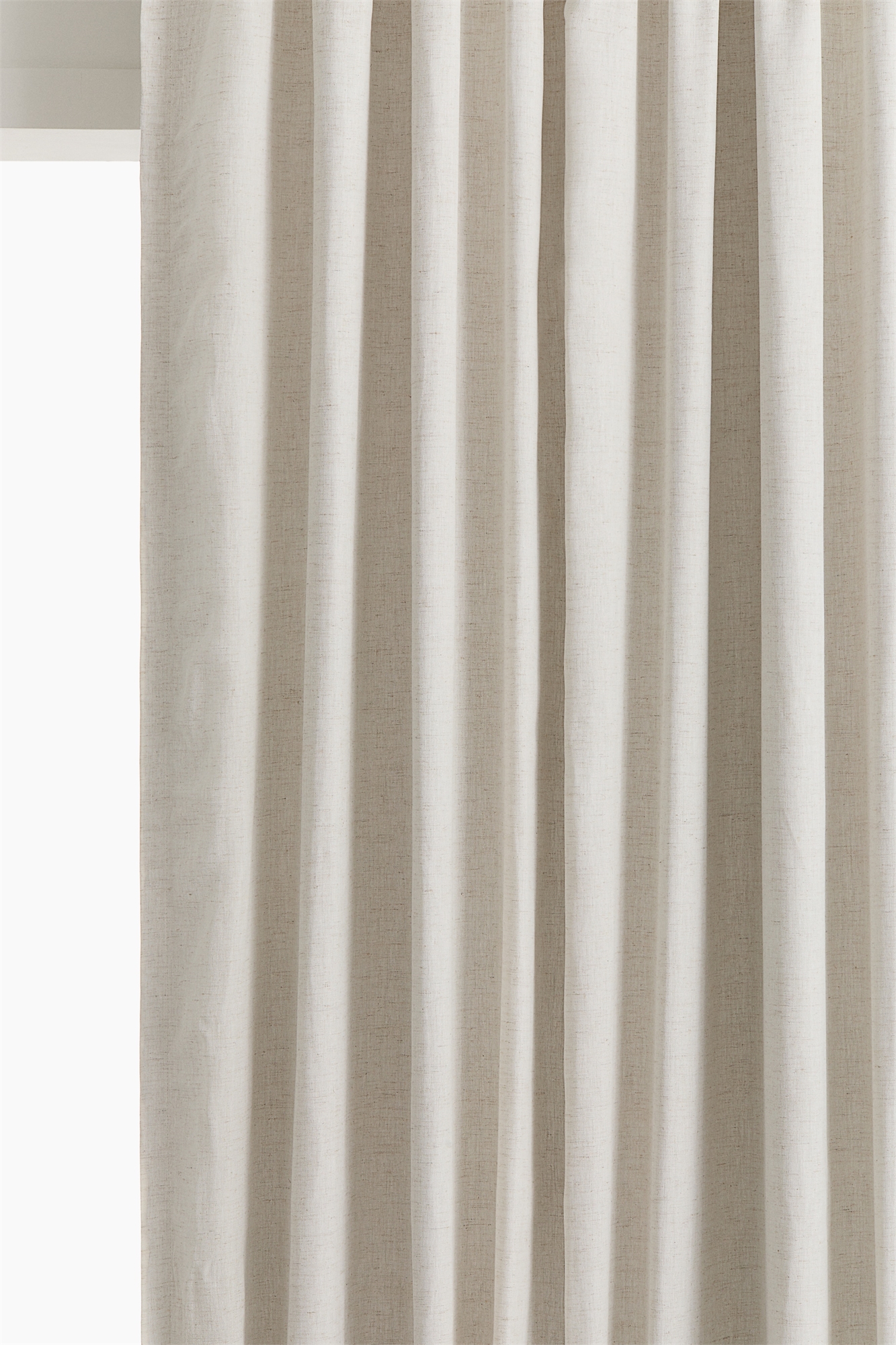 Пара очень длинных штор с лицевой стороной из лиоцелла и льняного переплетения. Она имеет отдельное полотно затемняющей подкладки, благодаря которой штора прекрасно драпируется. Ткань имеет высокую плотность, которая уменьшает проникновение света, но не блокирует его полностью. Многоходовой подхват на шторах позволяет подвешивать их в разных стилях, что делает их подходящими для различных штанг или карнизов и позволяет легко менять внешний вид штор. Крючки в комплект не входят. Подол.