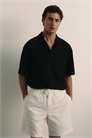 Рубашка-поло с короткими рукавами из мягкого трикотажа из смеси хлопка с курортным воротником, застежкой на одну пуговицу и прямым покроем подола с небольшим разрезом с каждой стороны. Свободный крой для создания объемного, но не чрезмерно большого силуэта.