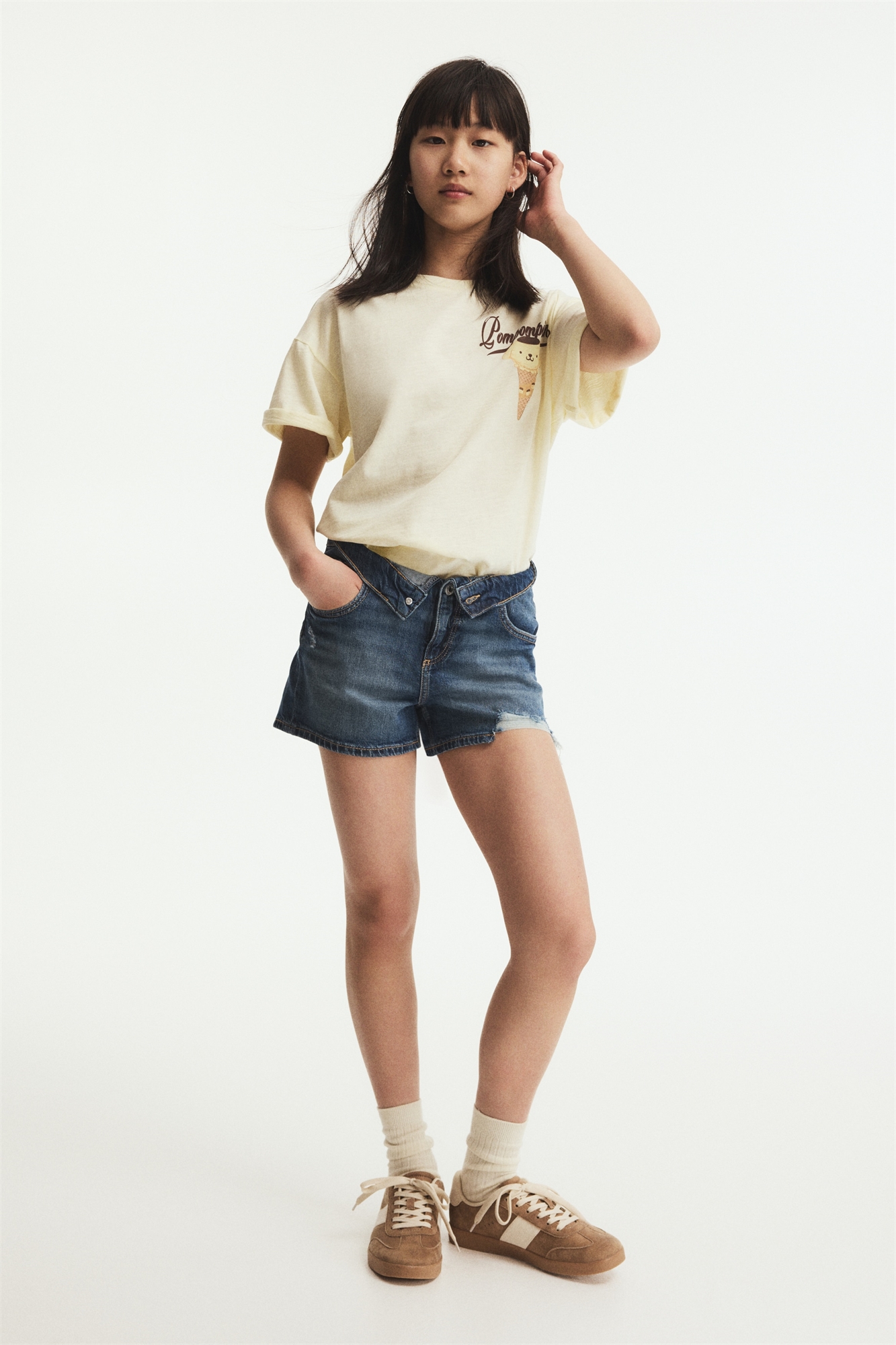 Шорты с 5 карманами из мягкого хлопкового денима с регулируемой резинкой на талии и ширинкой на молнии с пуговицей.