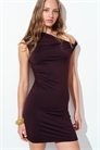 Короткое приталенное платье из стрейч-джерси без рукавов, с асимметричным вырезом и одним оголенным плечом. С одной стороны - рюши, создающие эффект легкой драпировки.