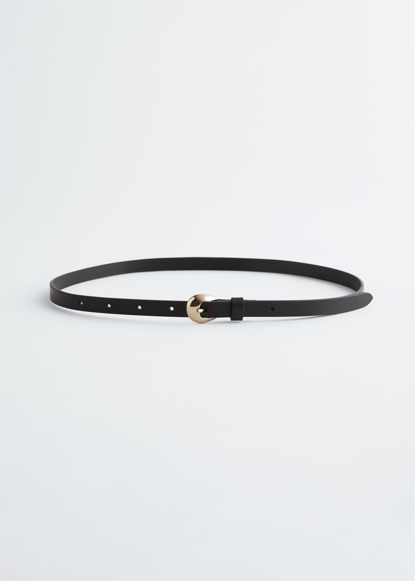 Тонкий кожаный ремень с пряжкой в форме полумесяца