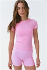 Короткий спортивный топ из мягкой функциональной ткани с добавлением DryMove™, которая отводит влагу от кожи, обеспечивая комфортную сухость во время движения. Облегающий крой с круглым вырезом, короткими рукавами и прямым покроем.