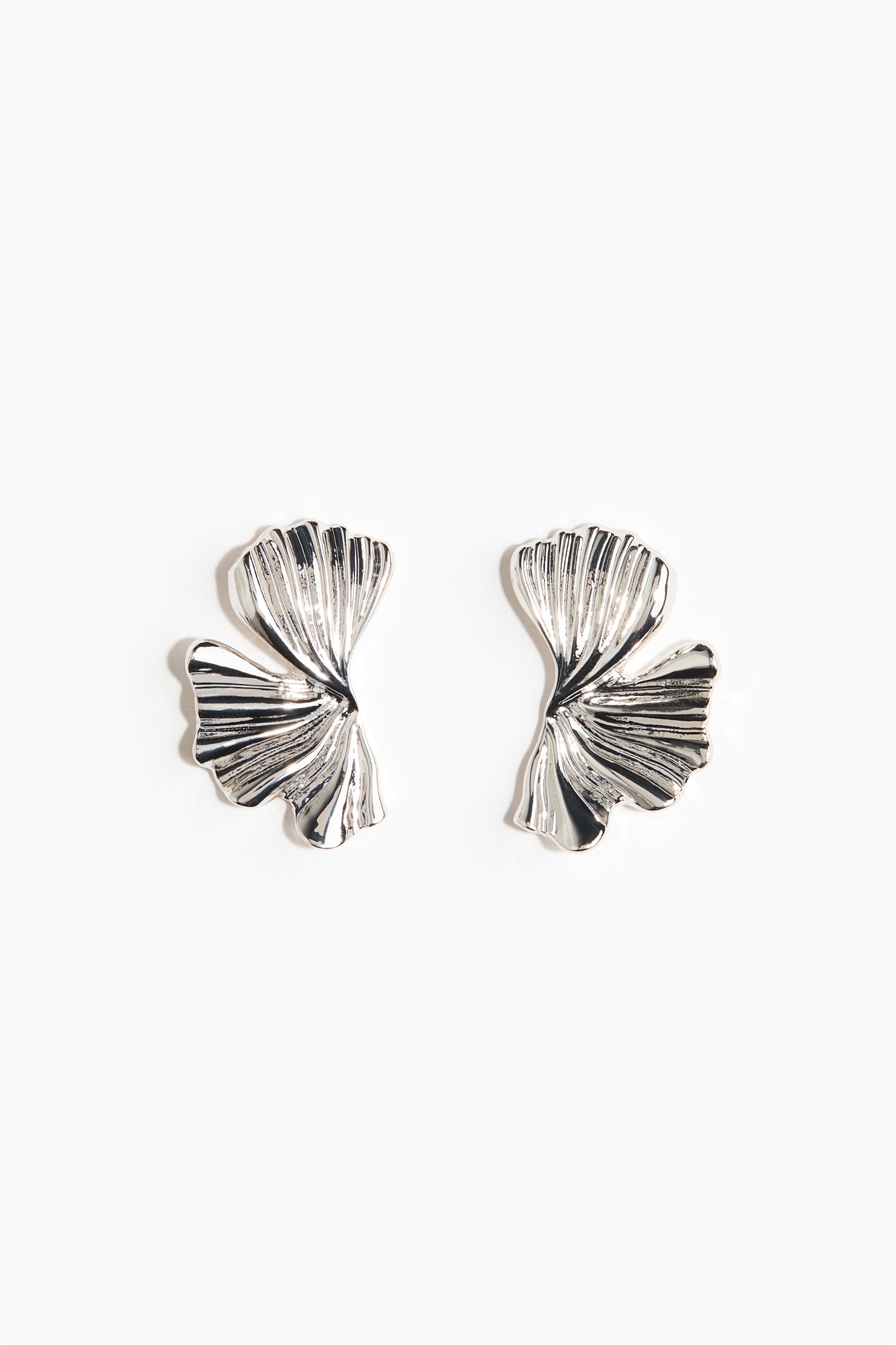 Металлические серьги в форме лепестков с рифленой отделкой.