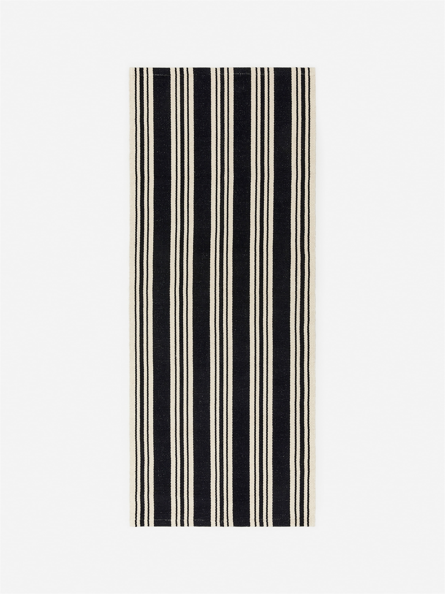 Тканый хлопковый ковер с узором из полос, окрашенных пряжей. Размеры 70 см x 180 см.