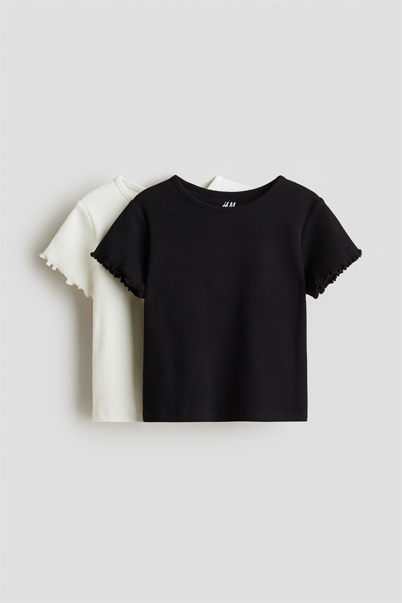 Футболки из мягкого ребристого хлопкового джерси с круглым вырезом и короткими рукавами с оверлочными краями на манжетах.
