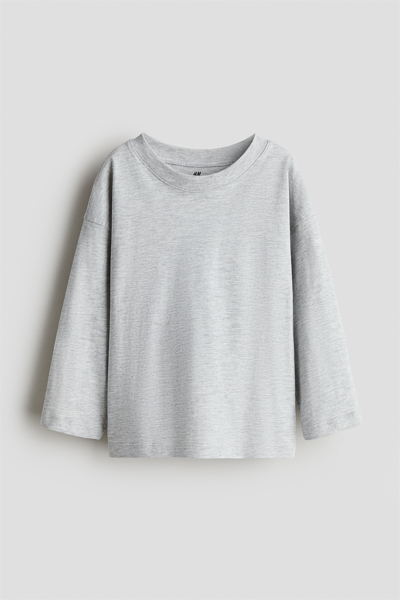 Футболка с длинными рукавами из мягкого хлопкового джерси, круглым вырезом с ребристой отделкой и спущенными плечами.