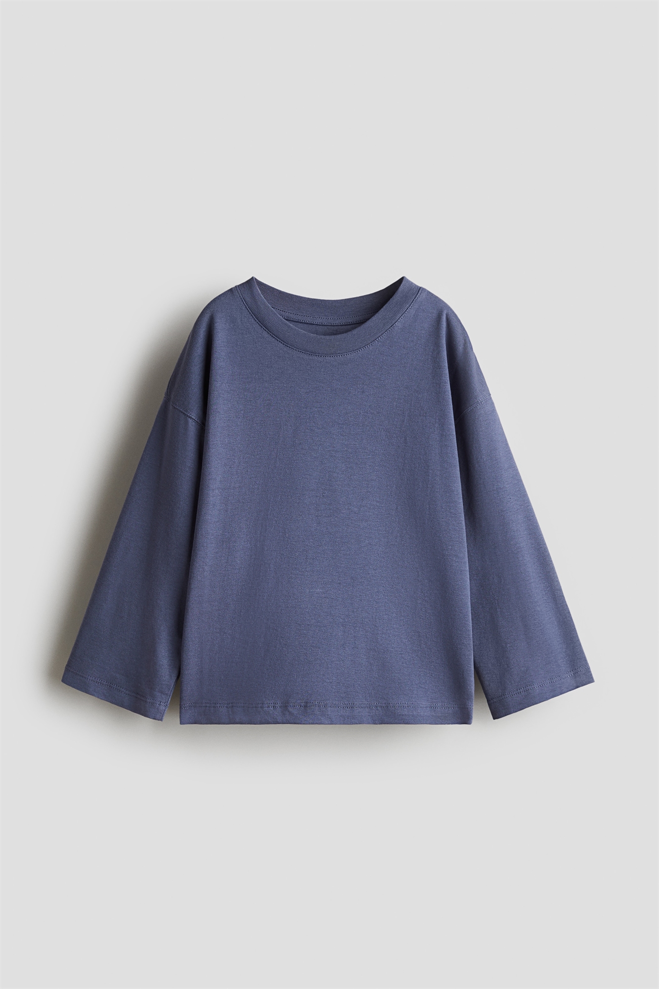 Футболка с длинными рукавами из мягкого хлопкового джерси, круглым вырезом с ребристой отделкой и спущенными плечами.