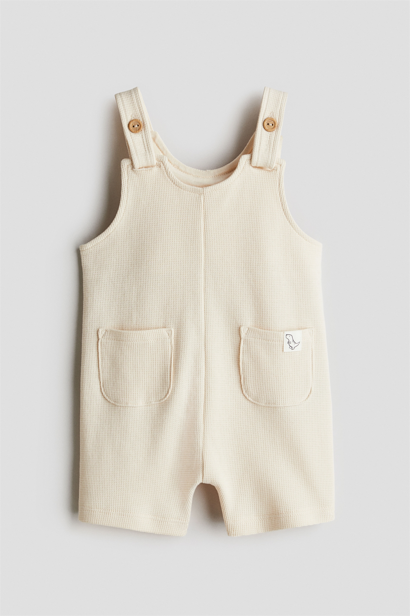 Шорты-одуванчики из мягкого вафельного хлопкового джерси. Круглый вырез, регулируемые плечевые лямки с застежкой на пуговицы и накладные карманы спереди.