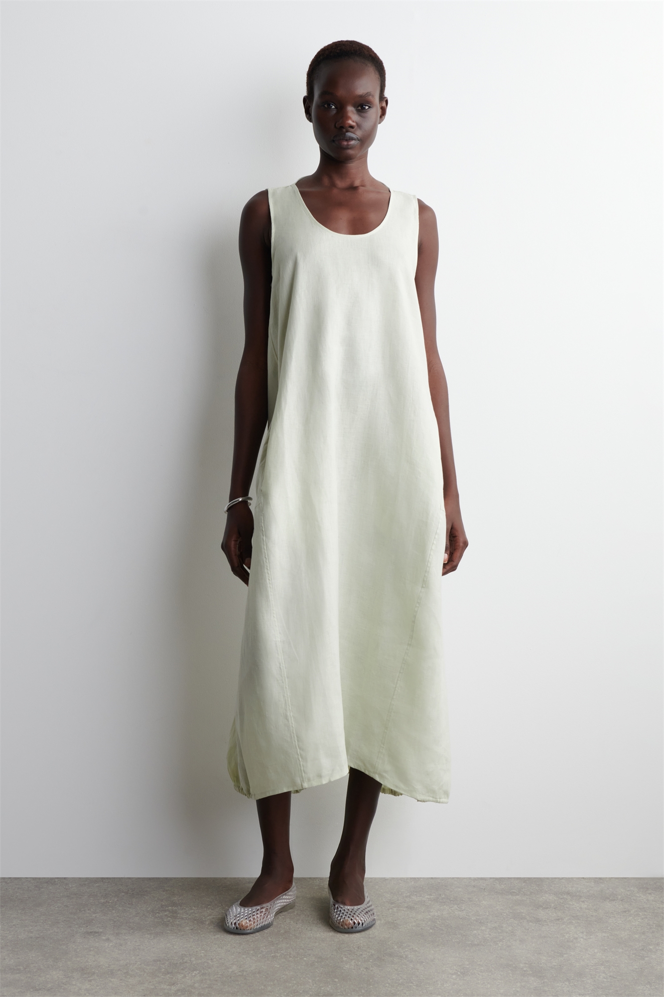 Это современное платье-макси, выполненное в приглушенном зеленом цвете, сшито из легкого льна и скроено по косой, чтобы создать утонченную форму. Вырез горловины и объемный подол на резинке сзади. Regular fitБоковые карманыПереработанный лен - это лен, полученный из текстильных отходов в процессе производства или из отслуживших свой срок текстильных отходов. Отходы механически перерабатываются и прядутся в новую пряжу Состав: 70% лен, 30% переработанный лен. Без учета отделки / Машинная стирка Длина по спинке для размера EU 36 составляет 121,5 см / Модель носит размер EU 36
