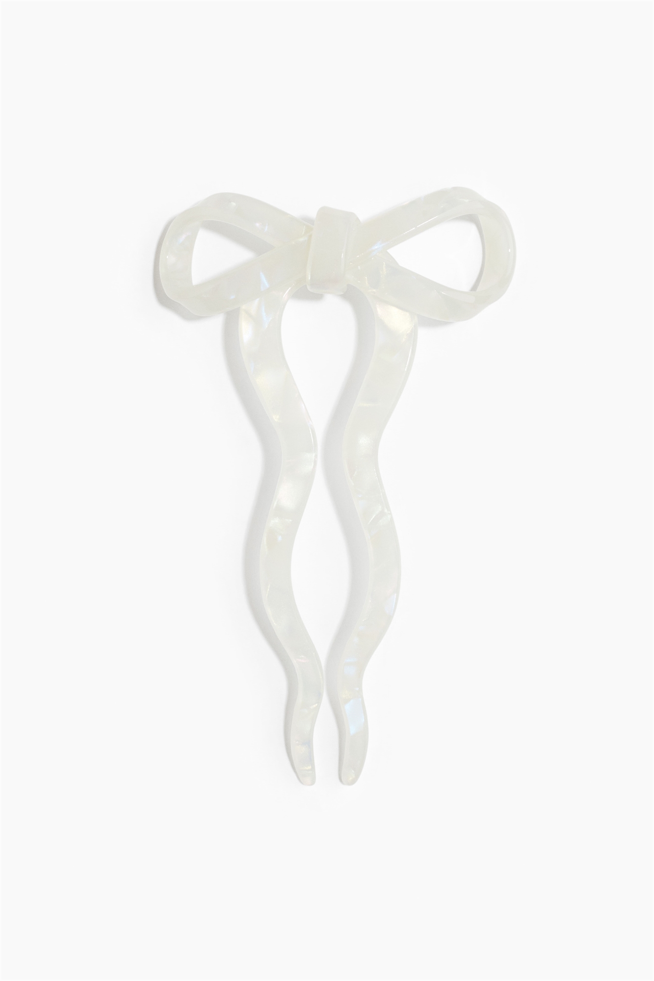 Палочка для волос из узорчатого пластика с мягкими краями и бантиком на вершине.