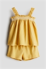 Комплект из топа и шорт из хлопкового джерси. Расклешенный топ с эластичной отделкой и оборкой по верху, квадратным вырезом и бретелями с оборкой. Шорты с регулируемой эластичностью и оборкой на талии.