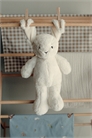 Мягкая игрушка из мягкого ворса в виде зайчика с милыми, вышитыми чертами лица.