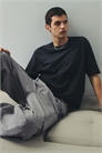 Футболка в стиле бокс из мягкого джерси из смеси хлопка с круглым вырезом с ребристой отделкой и прямым покроем. Завышенная посадка для придания свободного силуэта.