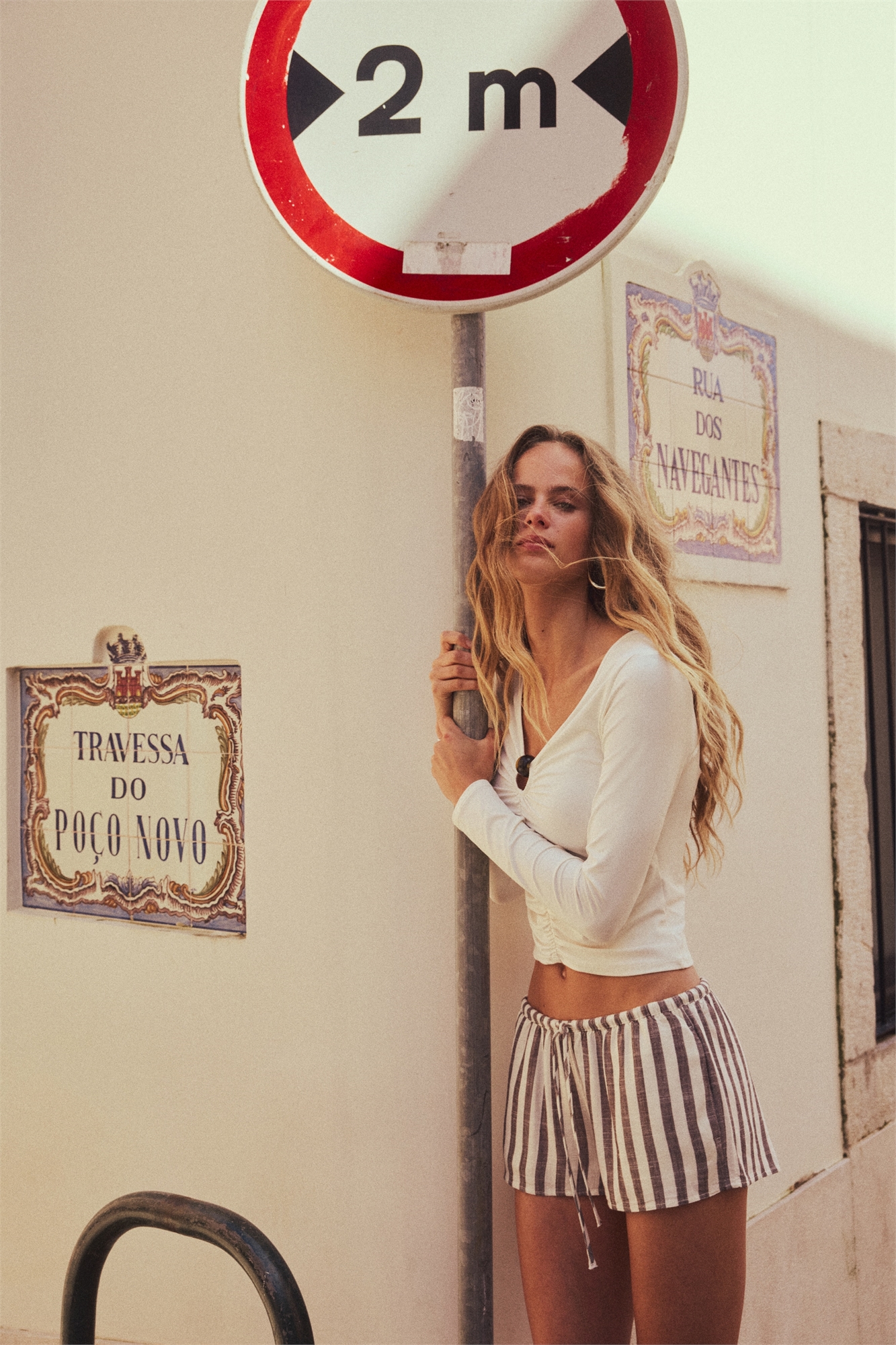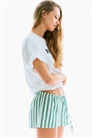 Шорты свободного покроя с воздушным плетением из смеси льна и вискозы. Эластичный пояс с завязками и незаметные карманы в боковых швах.