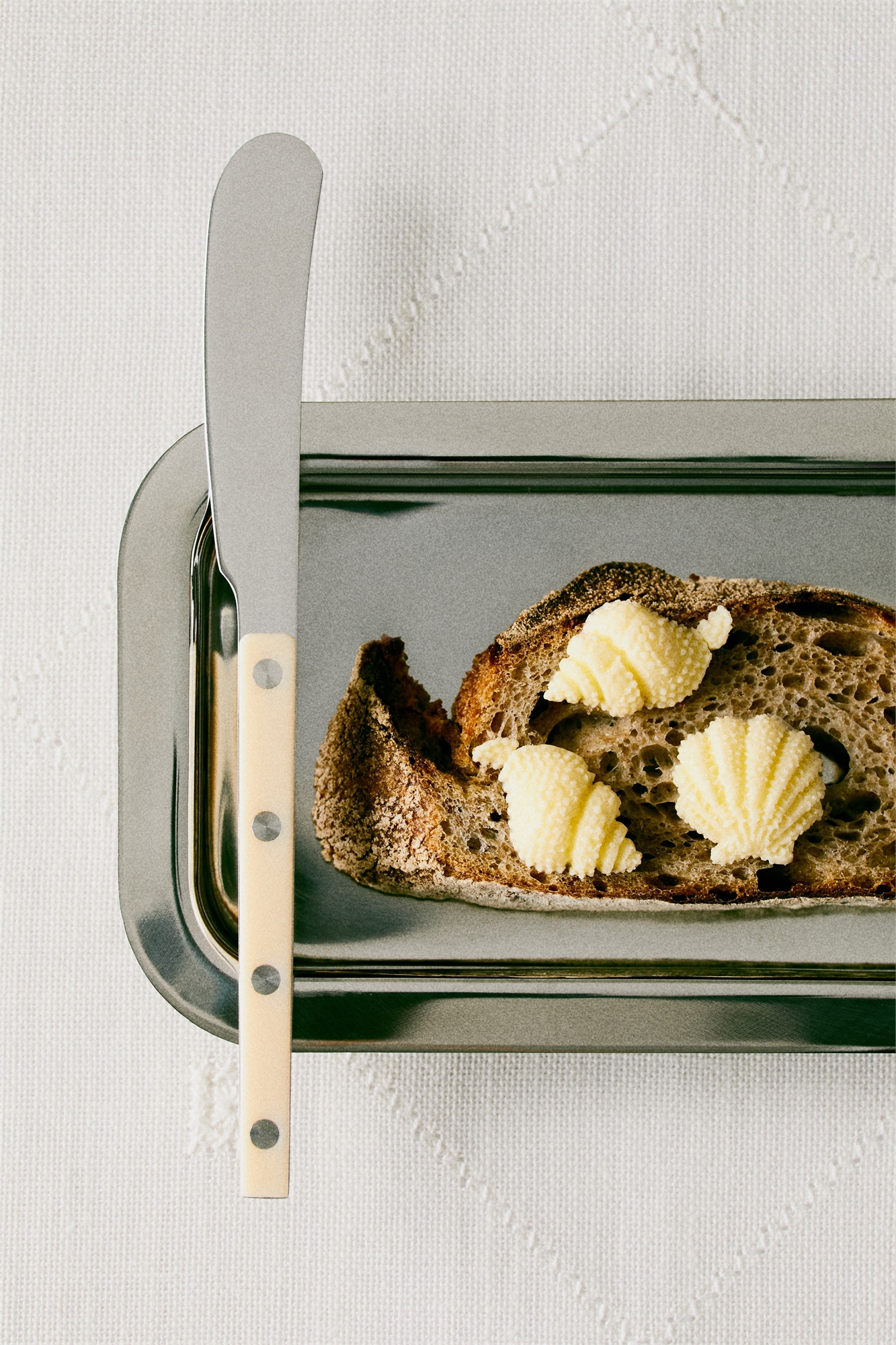 Пара ножей для масла с классическим дизайном из нержавеющей стали, вдохновленная уютными бистро на улицах Франции. Длина 17,5 см.