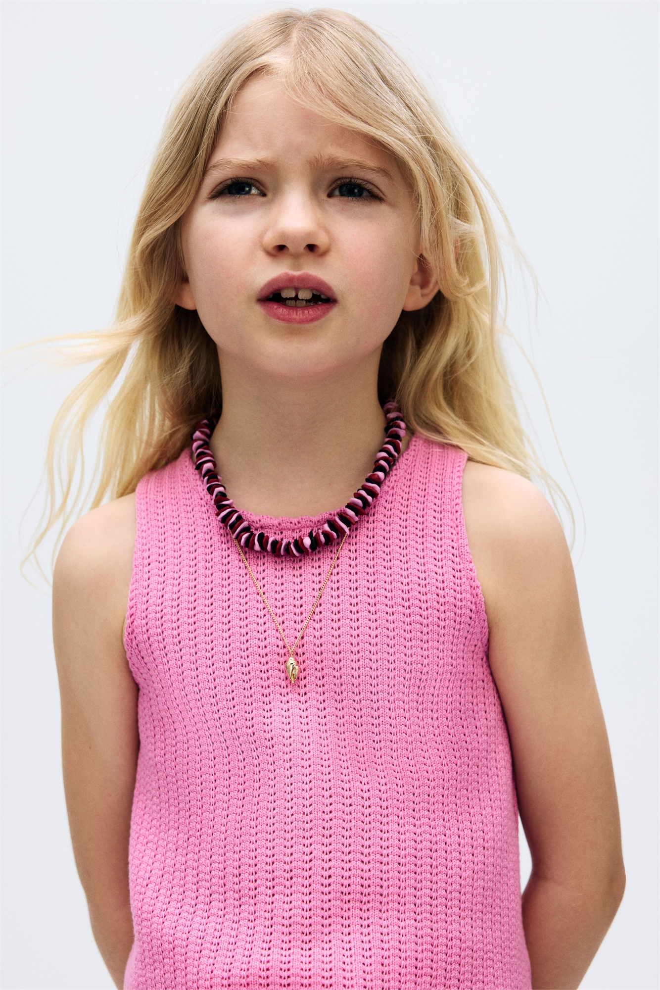 Жилет-топ из фактурного трикотажа с круглым вырезом и прорезью для ключа, застегивающейся на пуговицу сзади.