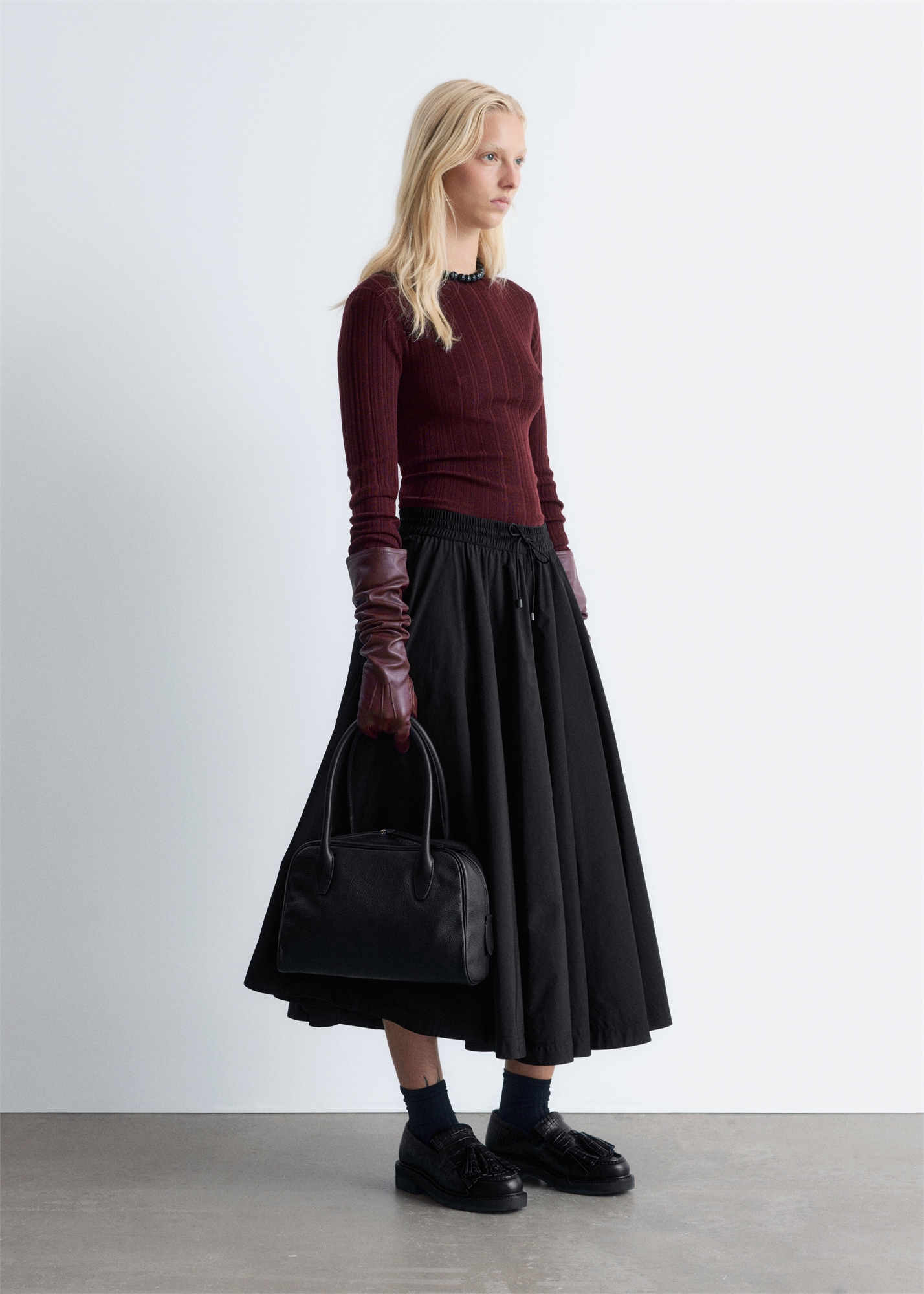 Топ с вырезом лодочки из шерсти с ребристой вязкой