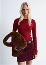 Топ с вырезом лодочки из шерсти с ребристой вязкой