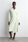Эта модель сочетает в себе классический стиль рубашки и вечную привлекательность платья-футляра. Оно выполнено в бледно-зеленом цвете и имеет заостренный воротник, плиссированные манжеты и асимметричные пуговицы, которые закручиваются на талии. Regular fitЗастежка на пуговицах Материал: 100% вискоза и подкладка. Без учета отделки / Машинная стирка Длина по спинке для размера EU 36 составляет 112,5 см / Модель носит размер EU 36