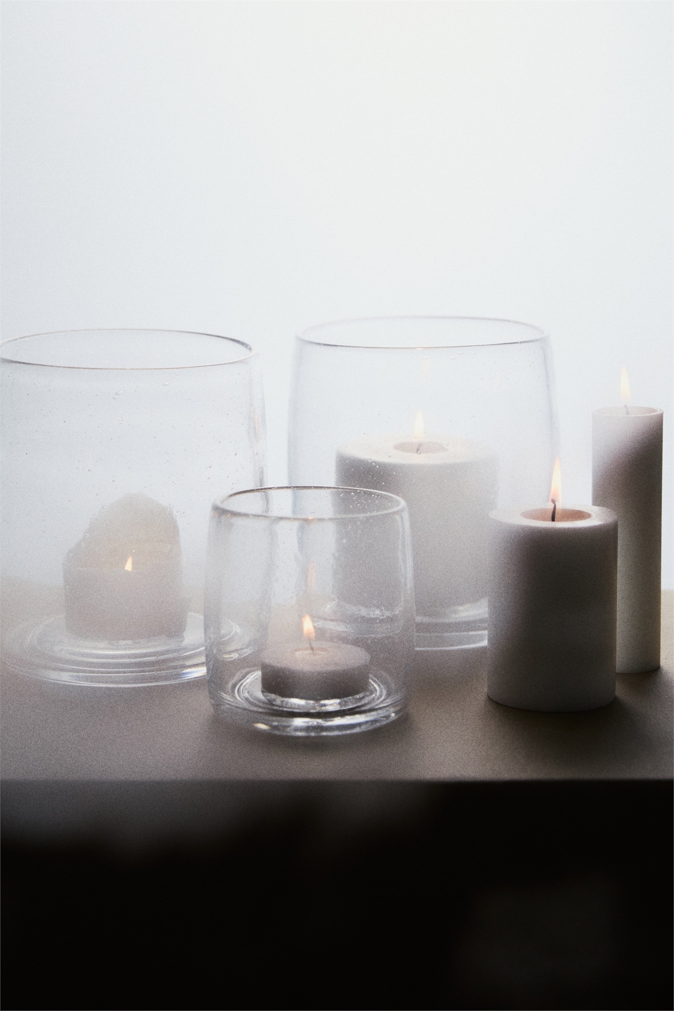 Небольшой стеклянный фонарь с тонким эффектом пузырьков. Идеально подходит для освещения теплых летних вечеров или создания уютного настроения в зимнее время.