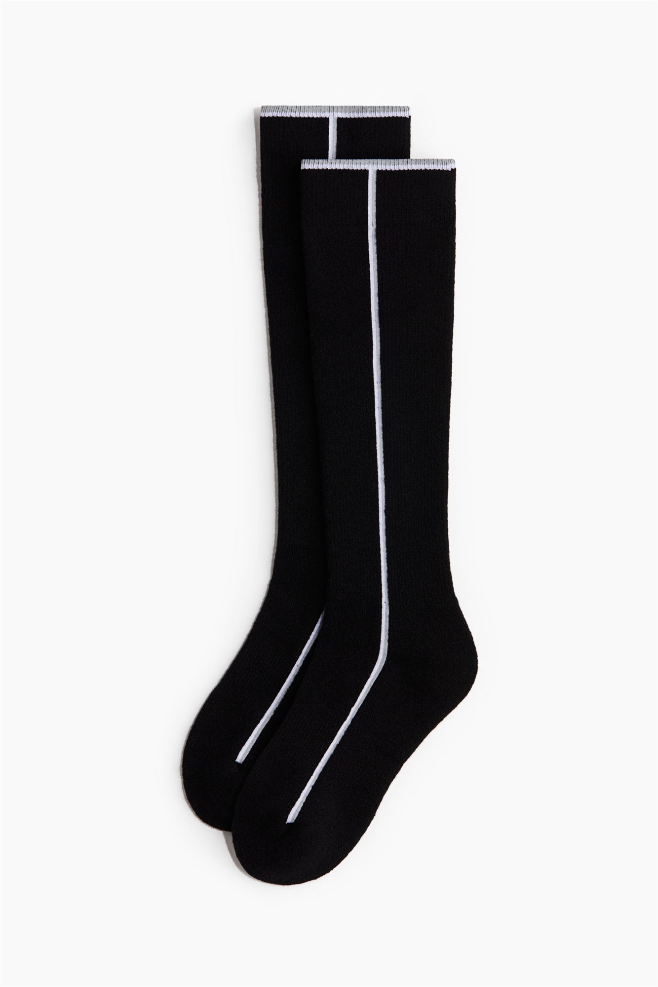 Лыжные носки из теплой шерстяной смеси с высоким голенищем и эластичным верхом.