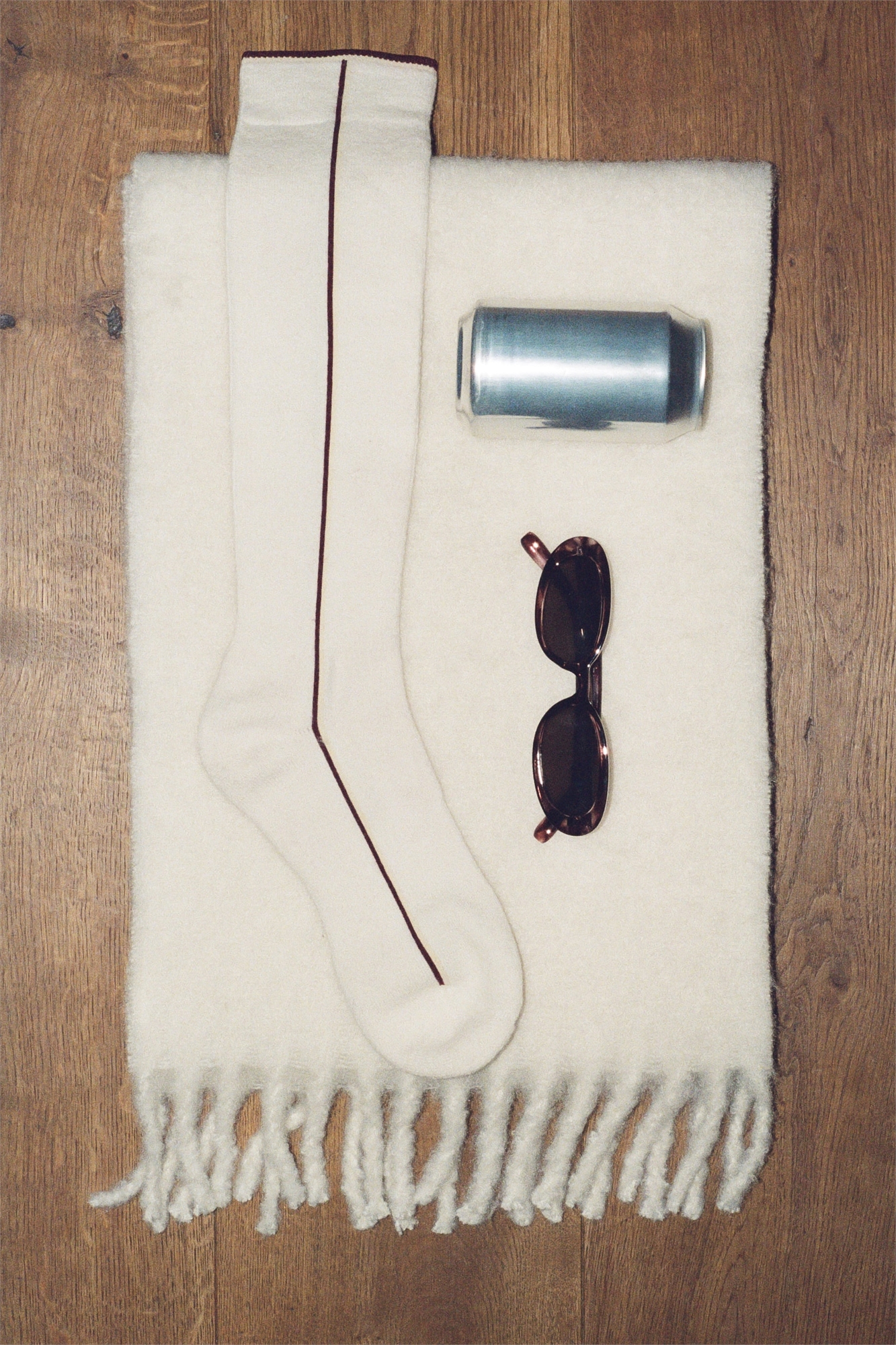 Лыжные носки из теплой шерстяной смеси с высоким голенищем и эластичным верхом.