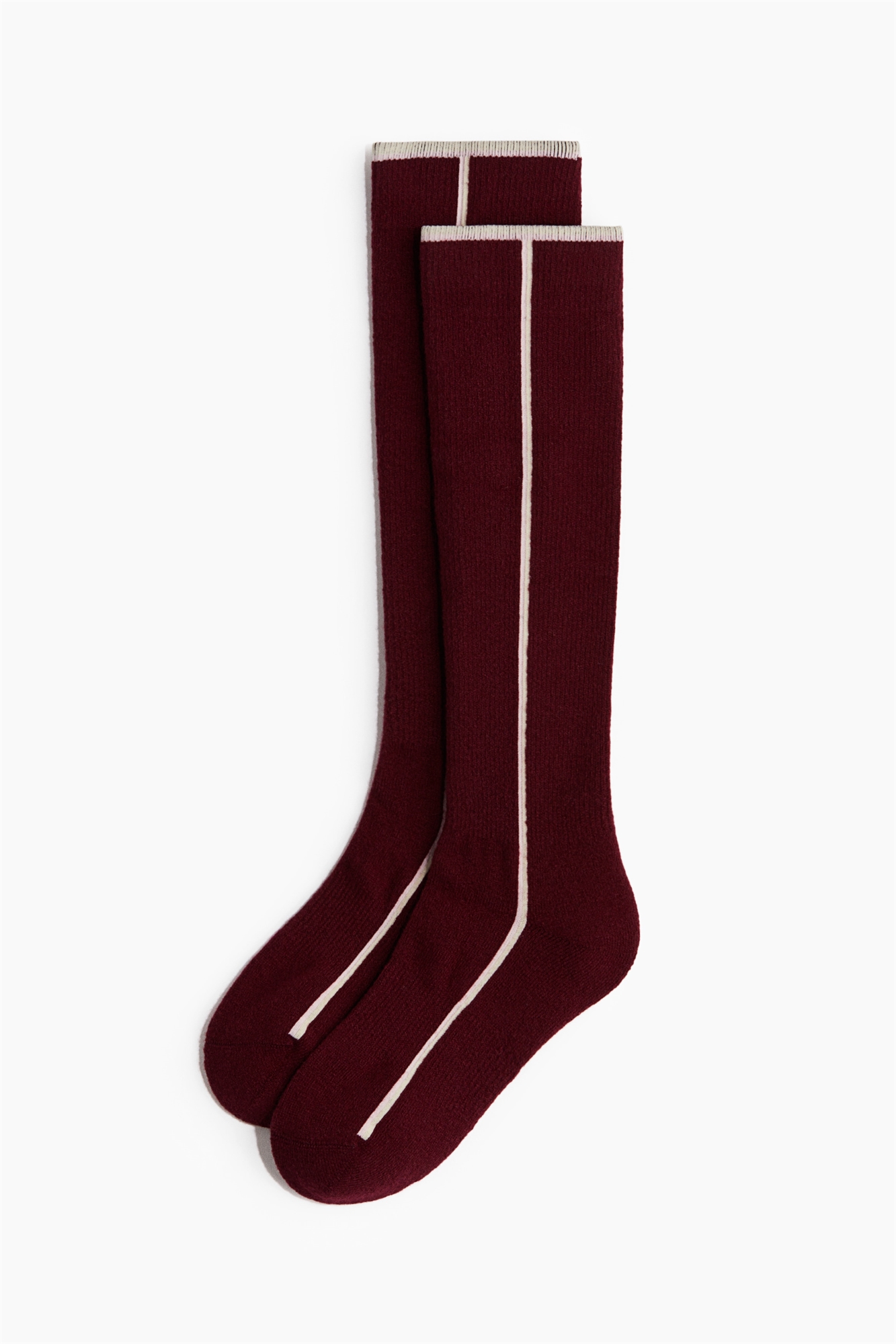Лыжные носки из теплой шерстяной смеси с высоким голенищем и эластичным верхом.