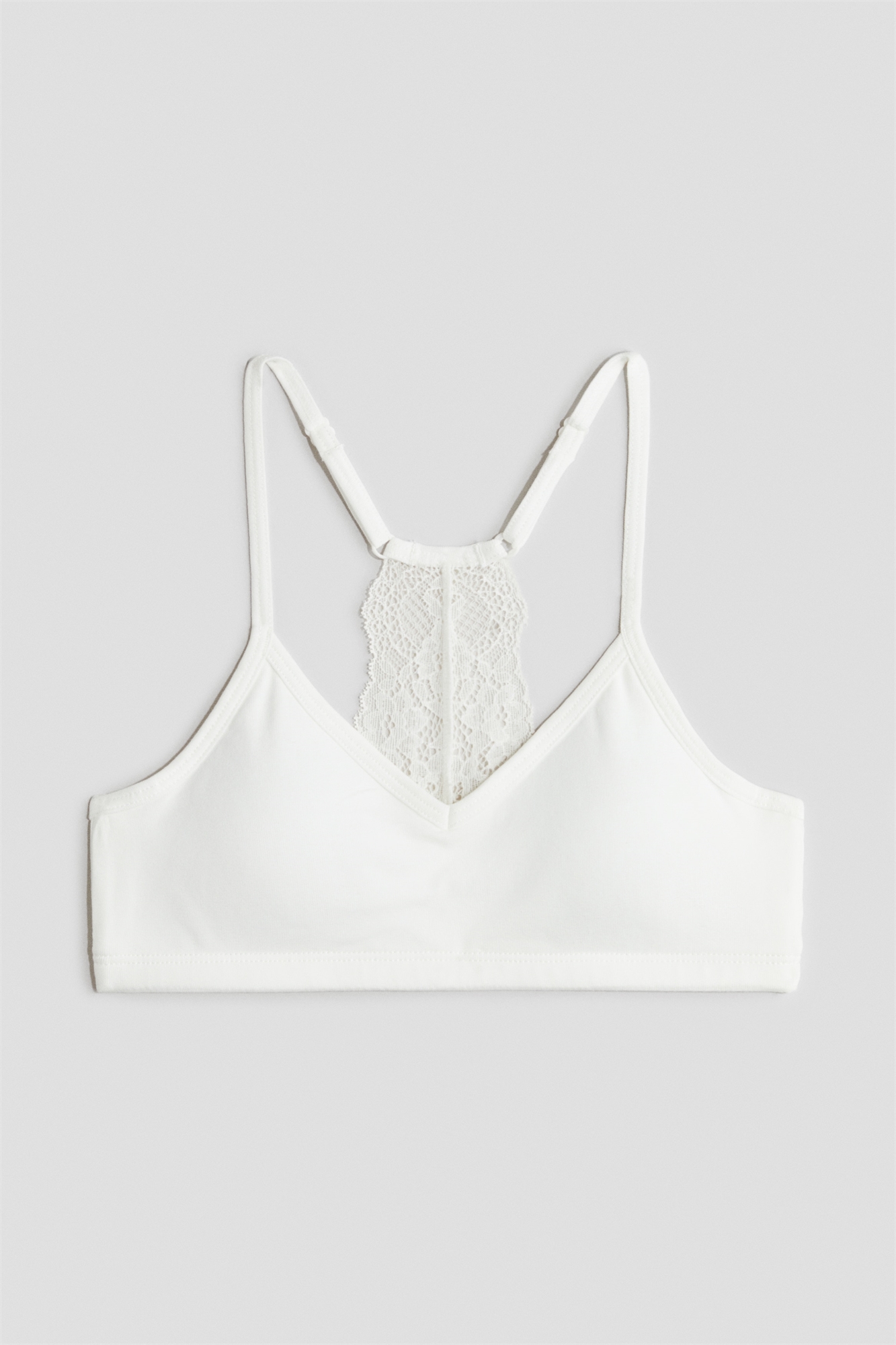 Короткий топ из мягкого хлопкового джерси с V-образным вырезом и кружевным разрезом сзади. Узкие регулируемые бретели, съемные вставки и эластичный подол. На подкладке.