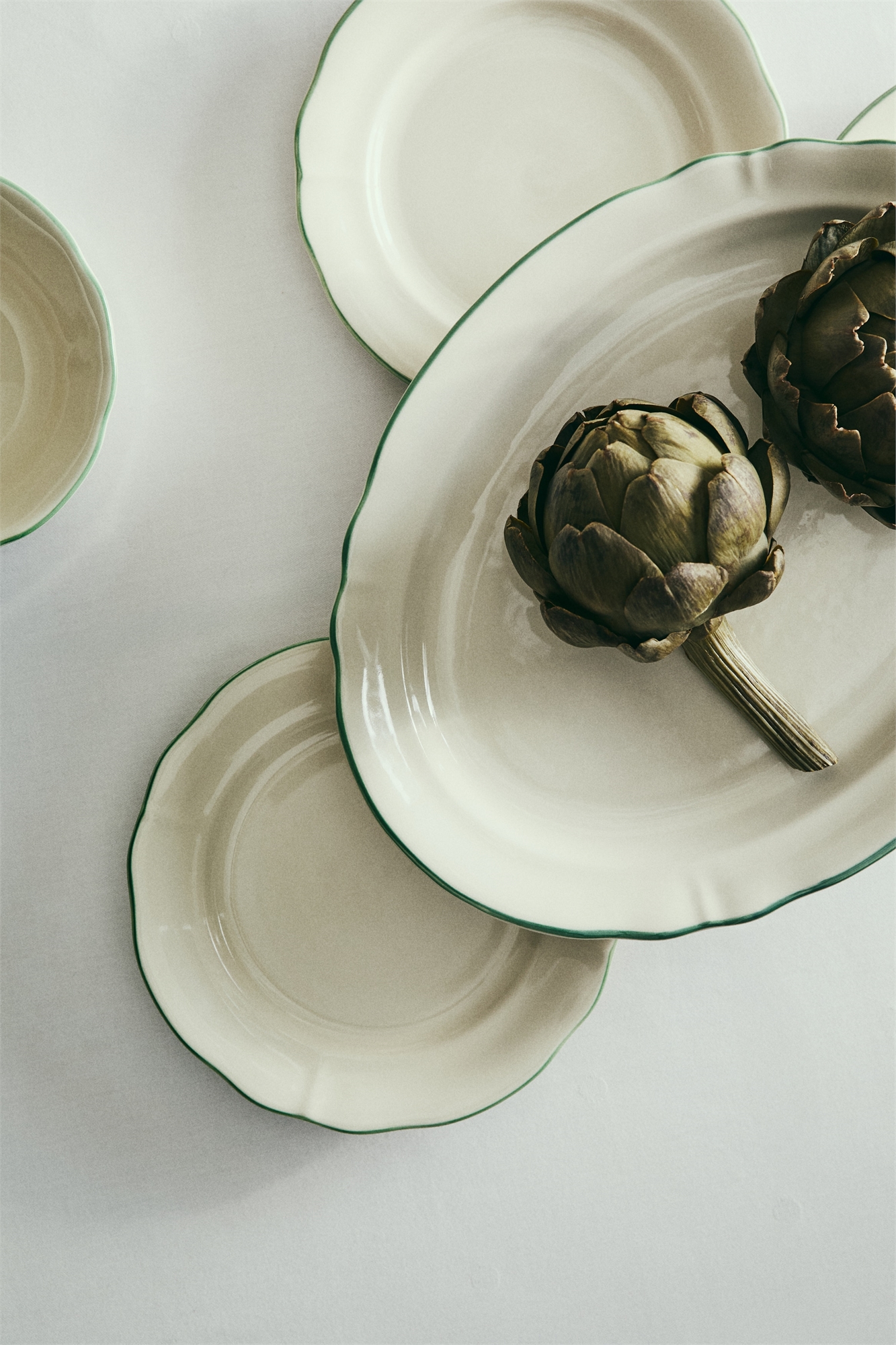 Сервировочная тарелка из керамики с винтажным дизайном и расписанным вручную ободком.