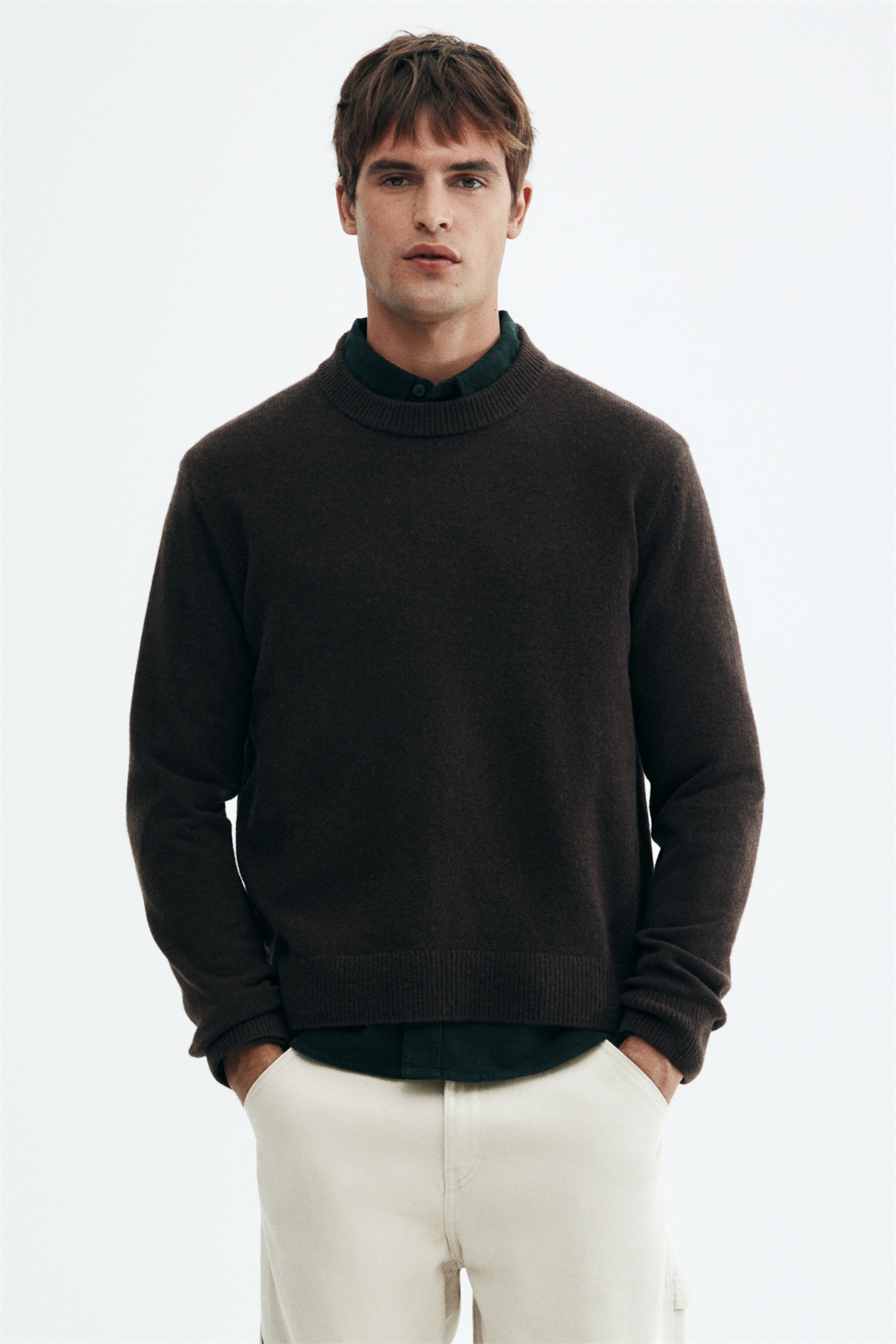Джемпер из мягкой шерсти тонкой вязки с круглым вырезом и длинными рукавами. Регулярный крой для комфортной носки и классического силуэта.