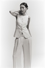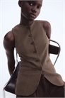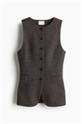 Длинный приталенный жилет из тканого материала с круглым вырезом и пуговицами спереди. Накладные карманы спереди и один вентиляционный проем сзади. На подкладке.