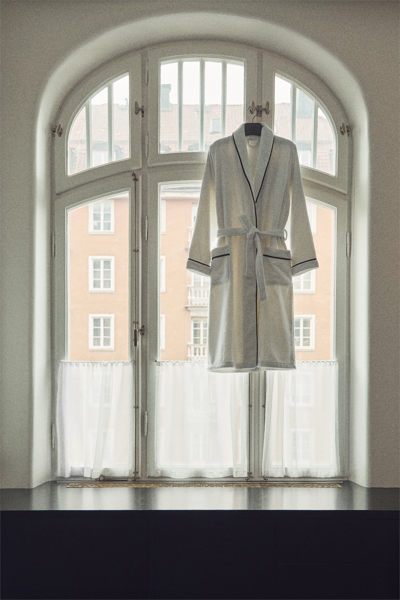 Халат из толстого, мягкого микрофлиса с декоративной отделкой, шалевым воротником, карманами спереди и съемным поясом-завязкой на талии. 360 GSM.