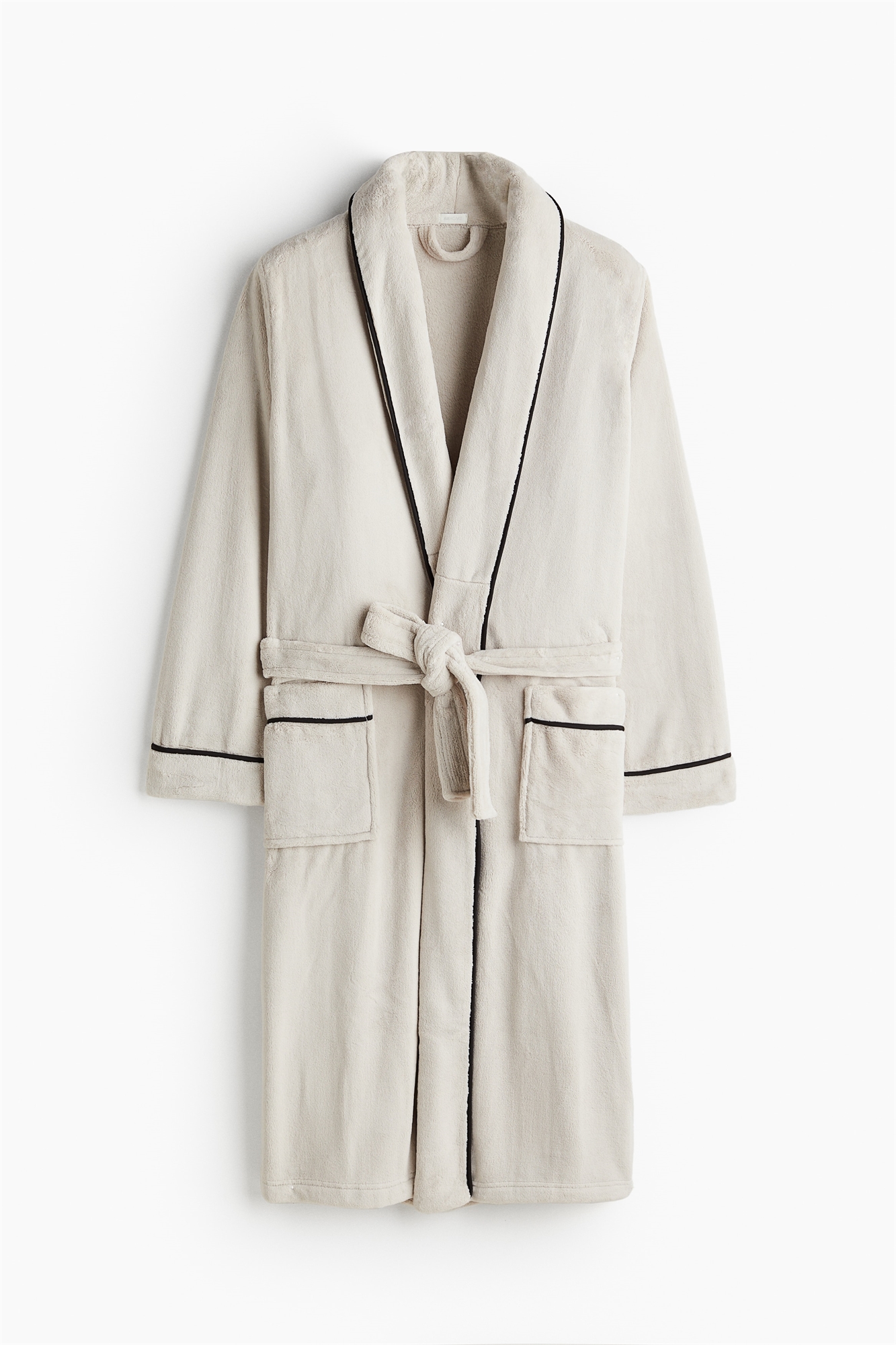 Халат из толстого, мягкого микрофлиса с декоративной отделкой, шалевым воротником, карманами спереди и съемным поясом-завязкой на талии. 360 GSM.