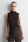 В этом сезоне знаковая вещь гардероба преображается благодаря изысканным формам и исключительно мягким тканям. Этот современный танк-топ с драпированной водолазкой и тонким облегающим силуэтом. Он изготовлен из эластичного материала TENCEL™ Lyocell и окрашен в насыщенный оттенок эспрессо. Зауженный кройTENCEL™ Lyocell - это регенерированное древесное волокно, изготовленное из древесной массы. Оно производится по замкнутому циклу, где химикаты используются повторно Материал: 100% TENCEL™ Lyocell. Без учета отделки / Машинная стирка Длина по спинке для размера S составляет 66,5 см / Модель носит размер S