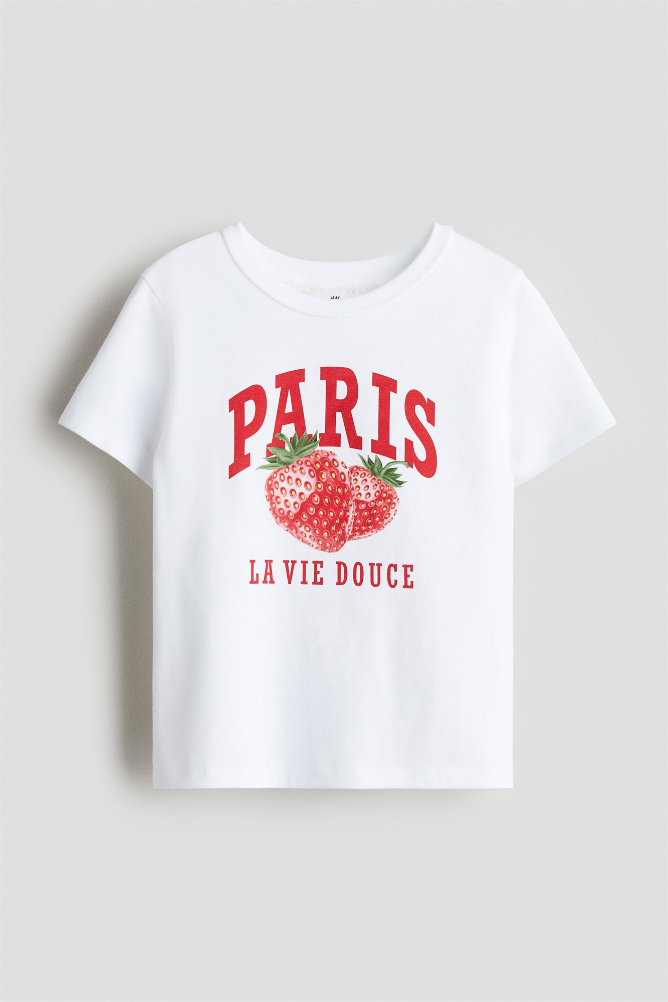 Футболка с принтом из мягкого хлопкового джерси. Футболка с ребристой окантовкой горловины и короткими рукавами.