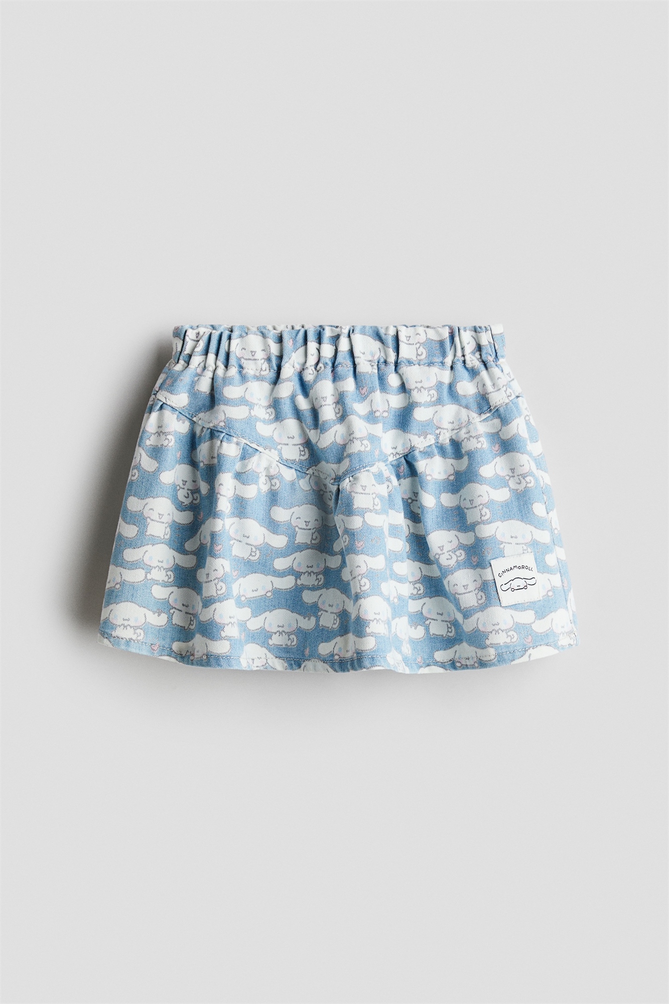 Расклешенная юбка из мягкого денима с принтом по всей длине и вшитыми велошортами из мягкого джерси. Регулируемая эластичная талия и V-образный вырез со сборками спереди и сзади.