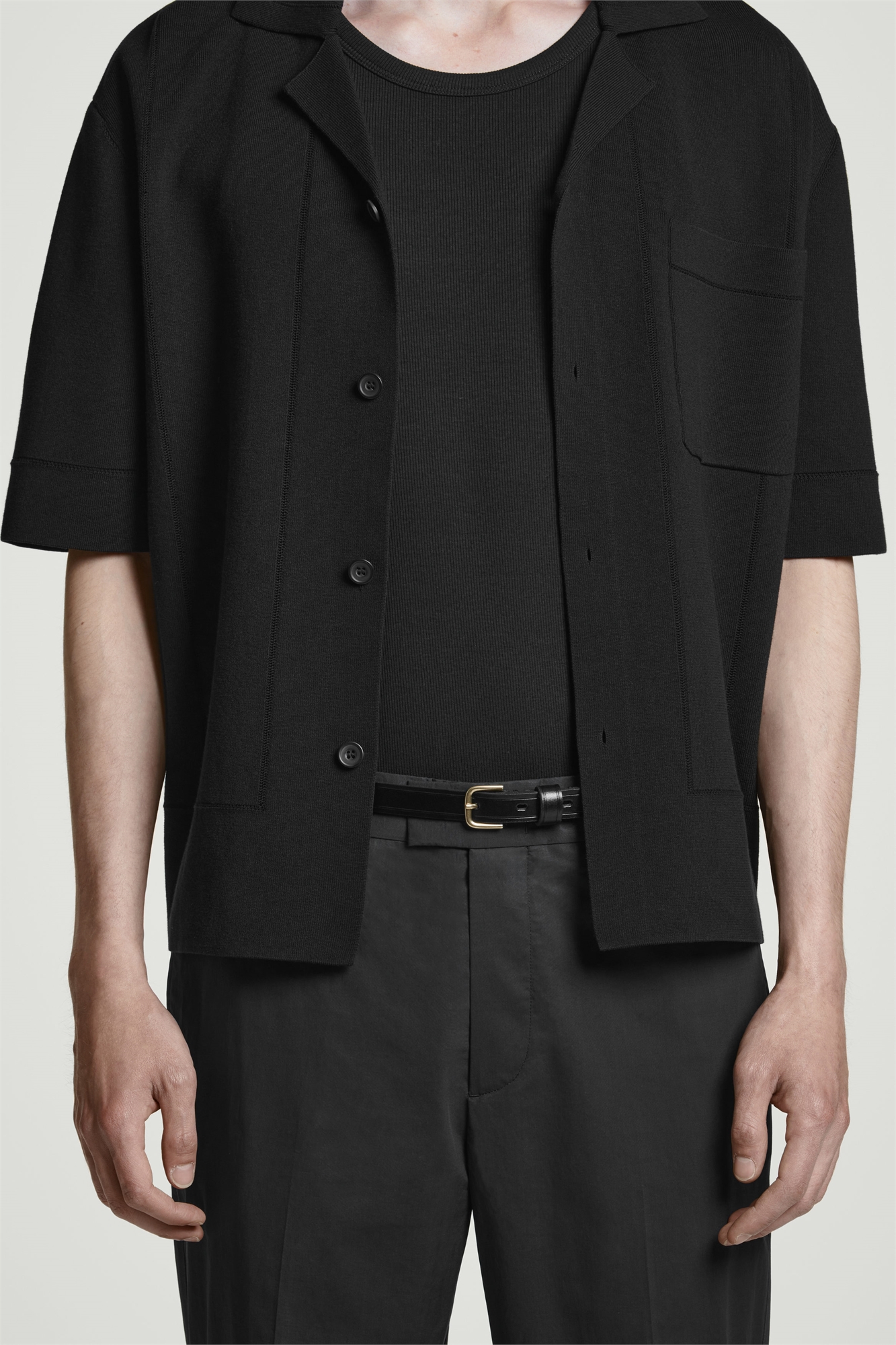 Универсальный кожаный ремень - основа современного гардероба. Эта полированная модель имеет квадратную пряжку серебристого цвета, которая дополняет глубокий черный тон кожи. Застежка-пряжкаCOS поддерживает ответственное производство через Leather Working Group Материал: 100% кожа. Без учета отделки