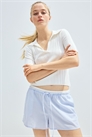 Шорты из хрустящего хлопкового поплина с эластичным поясом с завязками, неброскими боковыми карманами и небольшим разрезом по бокам на подоле.